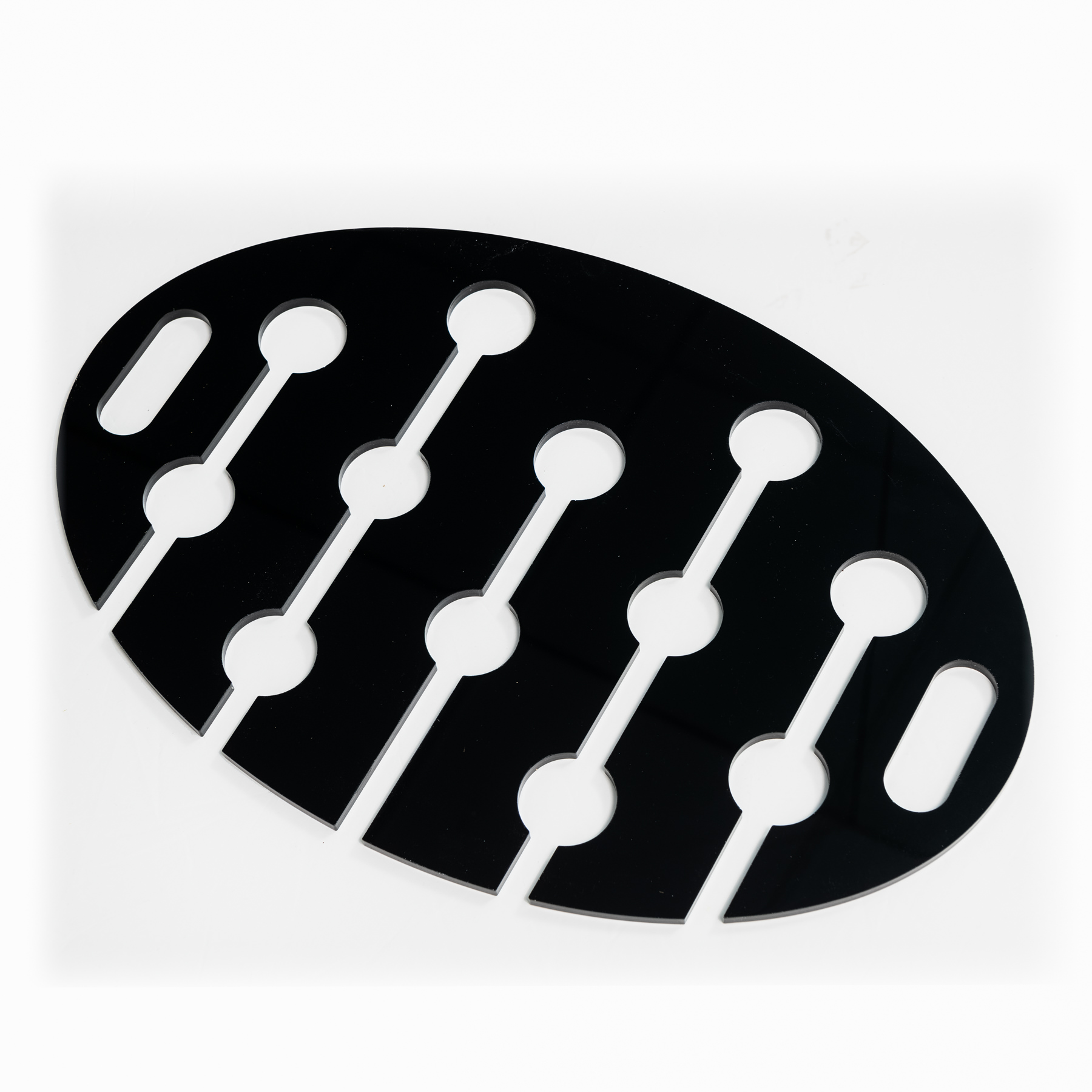 12 slots to hang your champagne or wine glasses. 50 x 33 x 0.8cm (hole diameter 4.5cm)